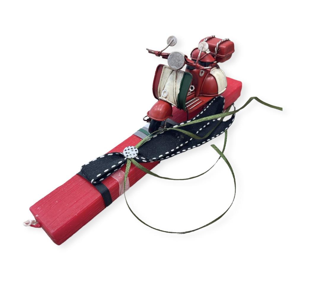Χειροποίητη πασχαλινή λαμπάδα με vintage βέσπα αντίκα