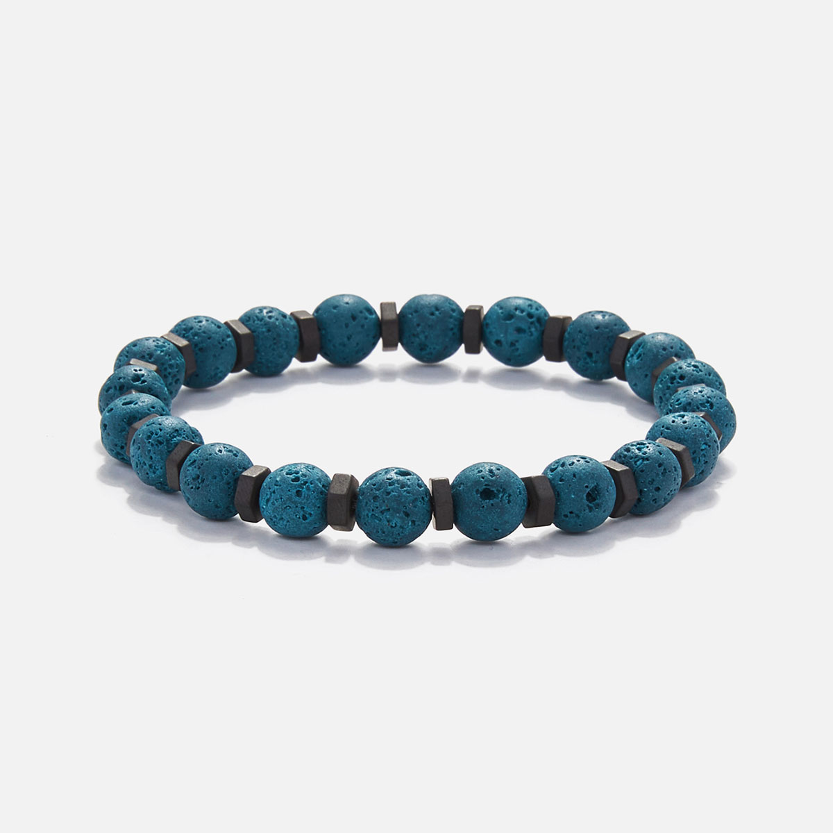 Ανδρικό χειροποίητο βραχιόλι με φυσικές ορυκτές πέτρες από πετρόλ λάβα (0.8mm) και παξιμάδι ματ αιματίτη (0.6mm). Ελαστικό με κατασκευή από σιλικόνη (1.0mm).