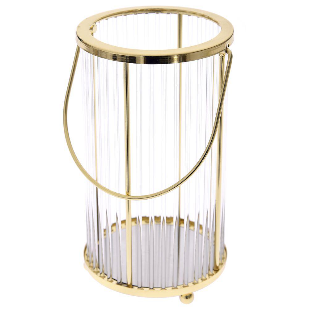 Χρυσό μεταλλικό κηροπήγιο με γυαλί