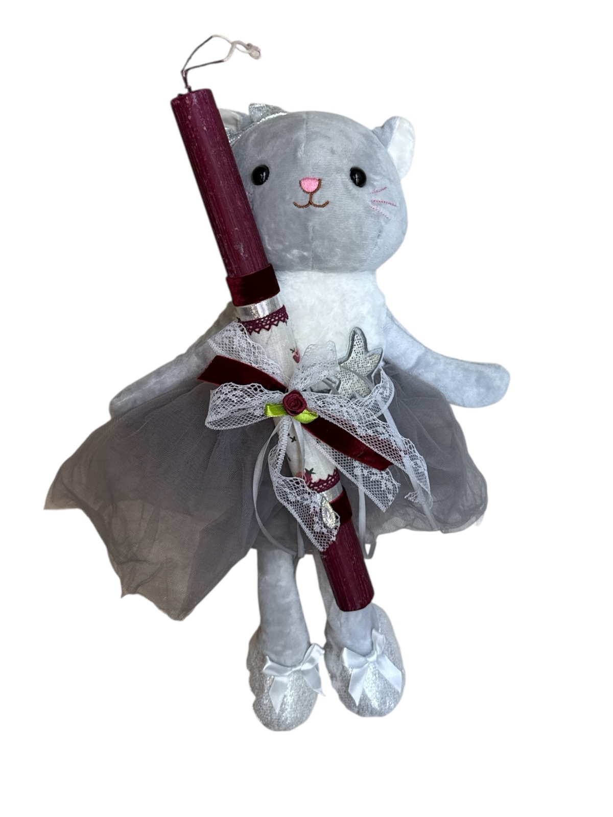 www.angiolina.gr / ΠΑΣΧΑ / ΛΑΜΠΑΔΕΣ / Πασχαλινή χειροποίητη λαμπάδα με γάτα μπαλαρίνα 40cm