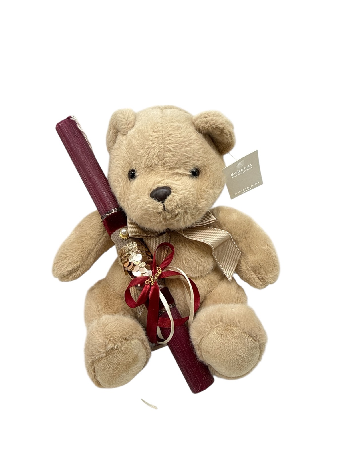 Πασχαλινή χειροποίητη λαμπάδα με λούτρινο αρκουδάκι καφέ 30cm