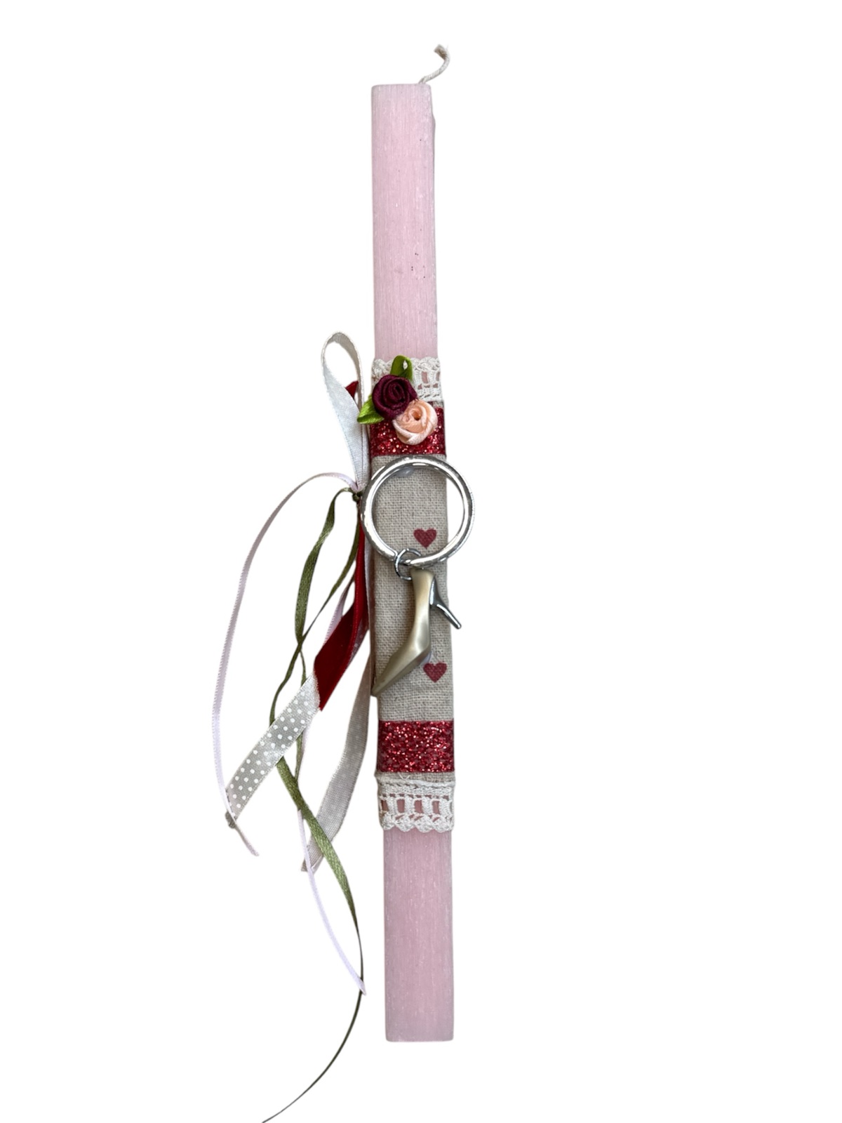 Πασχαλινή χειροποίητη λαμπάδα με μπρελόκ γυναικεία γόβα