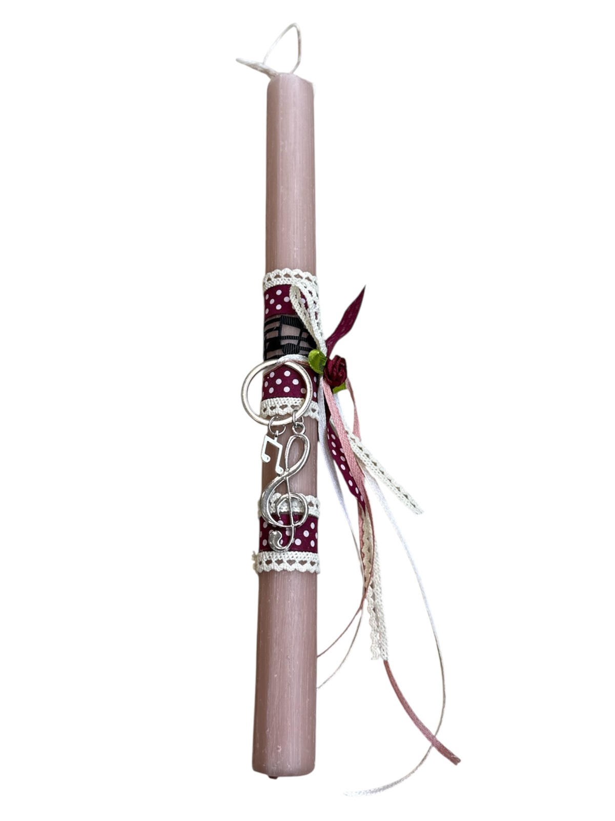 Πασχαλινή χειροποίητη λαμπάδα με μπρελόκ κλειδί του σολ