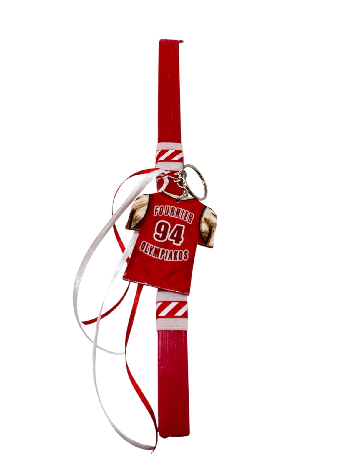 Πασχαλινή χειροποίητη λαμπάδα με μπρελόκ Ολυμπιακός Evan Fournier